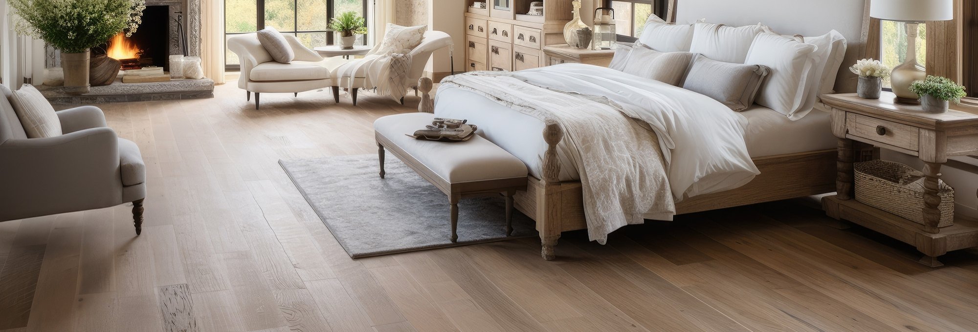Floors in a bright and stylish bedroom from Classic Hardwood Floors in San Diego, CA